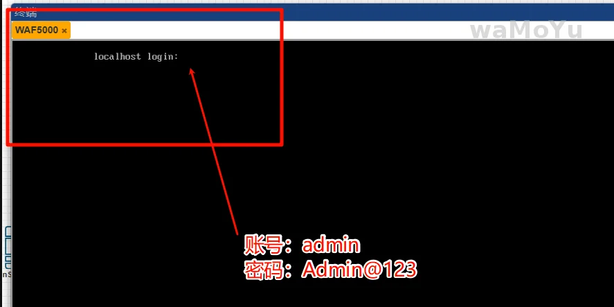 等待提示“localhost login”后,输入默认账号密码登入。(默认账号admin/Admin@123)