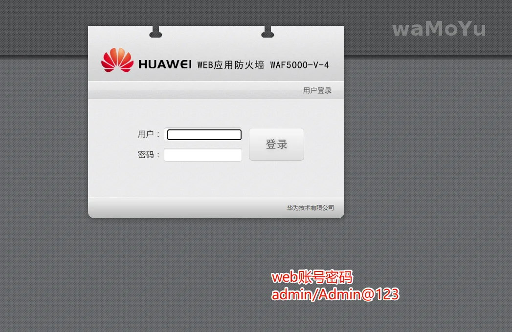 使用刚刚配置的IP地址,登入web网页。(默认账号admin/Admin@123)