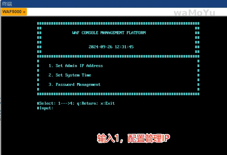 输入“1”配置管理IP