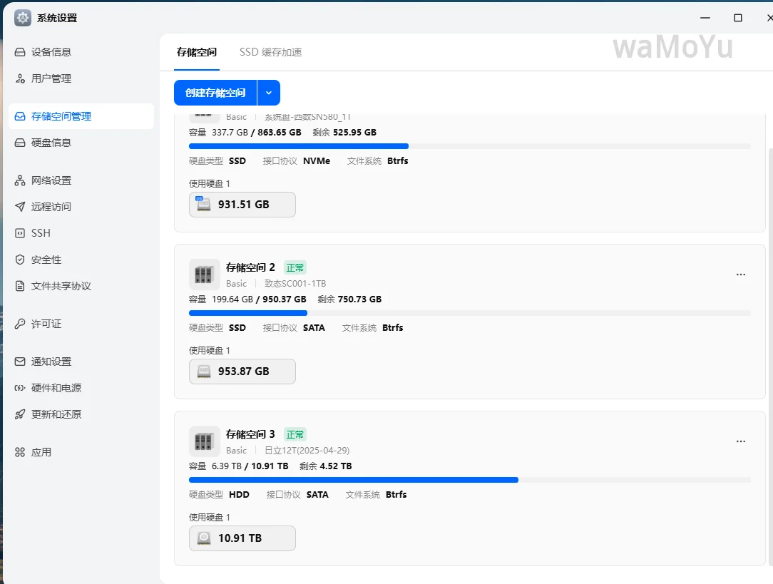 2块12T硬盘组的RAID1,但是感觉用不上,不如拆分后直接用定时备份把关键数据到另一块盘。