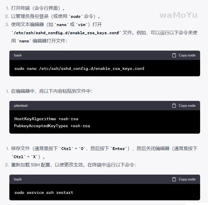 在SSH协议中,ssh-rsa签名算法是SHA1的哈希算法和RSA公钥算法的结合使用。由于目前SHA1的哈希算法容易受到攻击,OpenSSH从8.7以后版本开始默认不支持ssh-rsa签名方案。 https://help.aliyun.com/zh/ecs/user-guide/resolve-an-rsa-key-based-connection-failure-to-an-instance