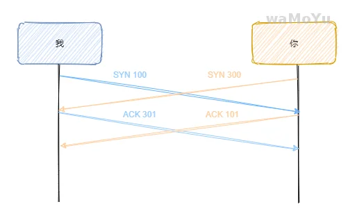 不过你没有想过这么一种情形,我和你同时开口,一起告诉对方各自的初始序号,然后分别回应收到了,这不就是四次握手了?