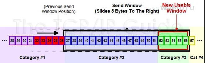 图中的 #1 是已收到 ACK 的数据,#2 是已经发出去但是还没收到 ACK 的数据,#3 就是在窗口内可以发送但是还没发送的数据。#4 就是还不能发送的数据。