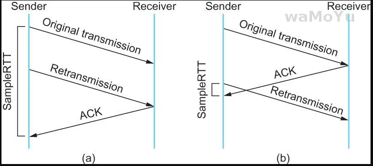 但是不采样重传会有问题,比如某一时刻网络突然就是很差,你要是不管重传,那么还是按照正常的 RTT 来算 RTO, 那么超时的时间就过短了,于是在网络很差的情况下还疯狂重传加重了网络的负载。