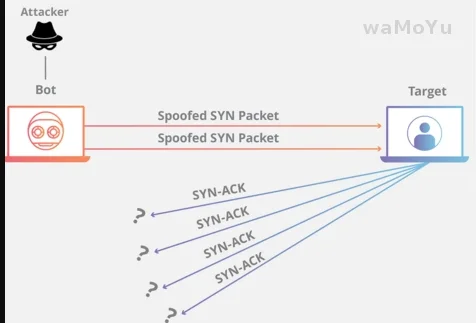 你看到没 SYN 超时需要耗费服务端 63s 的时间断开连接,也就说 63s 内服务端需要保持这个资源,所以不法分子就可以构造出大量的 client 向 server 发 SYN 但就是不回 server。