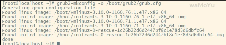 grub2-mkconfig -o /boot/grub2/grub.cfg